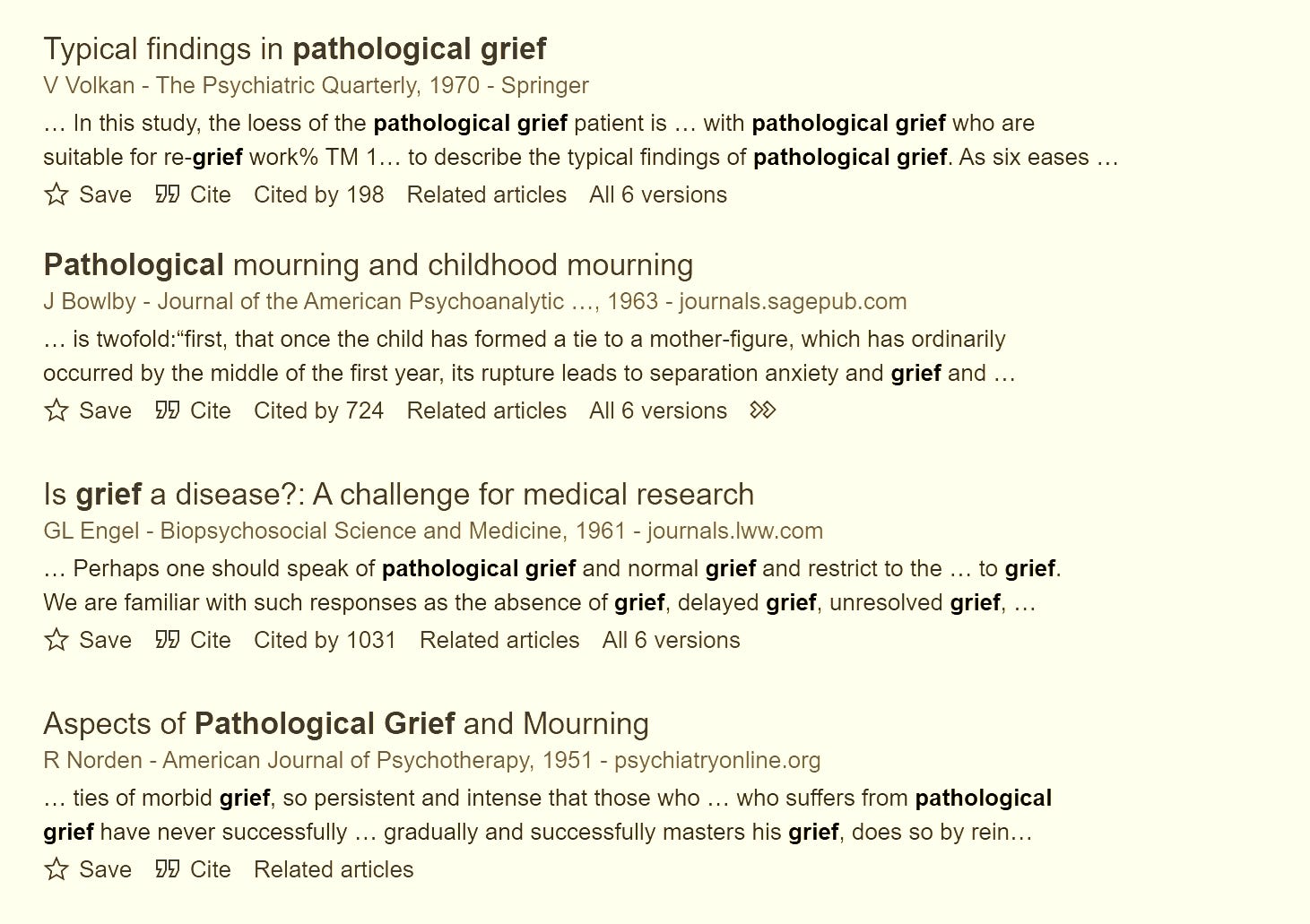 I concluded that there is no way to define "normal" grief, its variations are manifold. A third of our subjects had little or no grief; in contrast to my hypothesis, most of them seemed to have good relationships and stable lives. A third had regular grief with all its variations in symptoms and sequence. A third had a harder time and longer symptoms, but still lots of variation. The best predictor was previous low mood and depression. We found no evidence that delayed grief led to bad outcomes, and what I was taught in psychiatry residency-that prolonged grief was a product of an ambivalent relationship-was just plain wrong. Surviving spouses with ambivalent relationships had less grief than others.