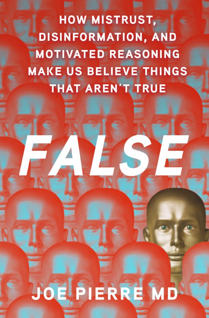 This is a review of the book “False: How Mistrust, Disinformation, and Motivated Reasoning Make Us Believe Things That Aren’t True” by Joe Pierre, MD, published by Oxford University Press, 2025.